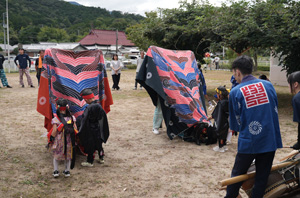お昼に今年も獅子がきました。与田山地区の大獅子舞です。