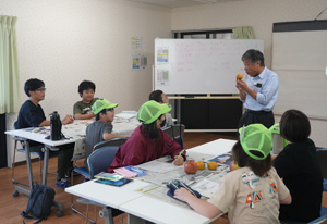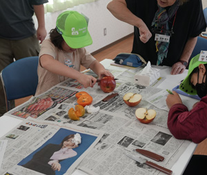 くだもの実習 実際にくだものを包丁で切って、中身をじっくり観察しました。