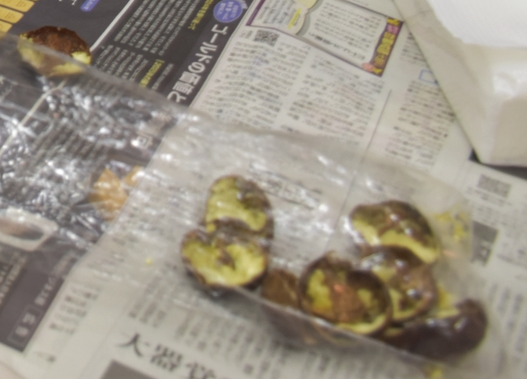 サラダとコンソメスープ おやつは焼き栗!(食べた殻しか撮せなかったです。おいしかった。)